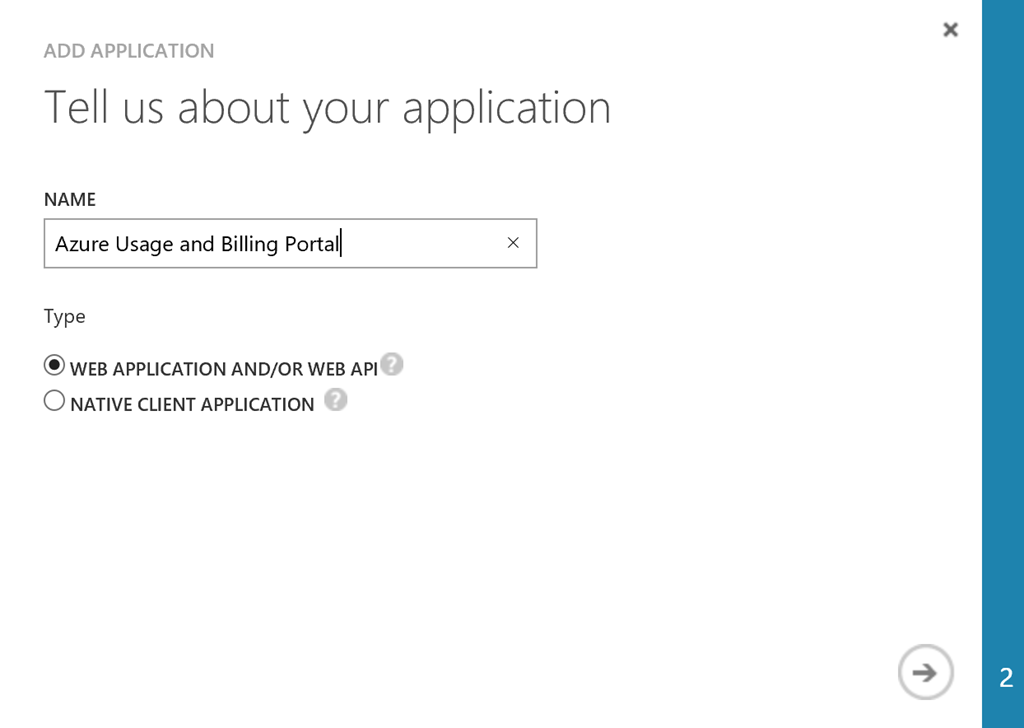 As the name I have choosen “Azure Usage and Billing Portal” and the type has to be “Web Application and/or Web API”. The sign-on URL will be the address of our registration website. Per default all Azure App Services will use azurewebsites.net as default domain. So it is important that you write down your website name, because you will use it in the ARM template later. The app ID URI should be in the following format “http://{AAD default domain address}/{custom name}”. Have a look at the screenshots.