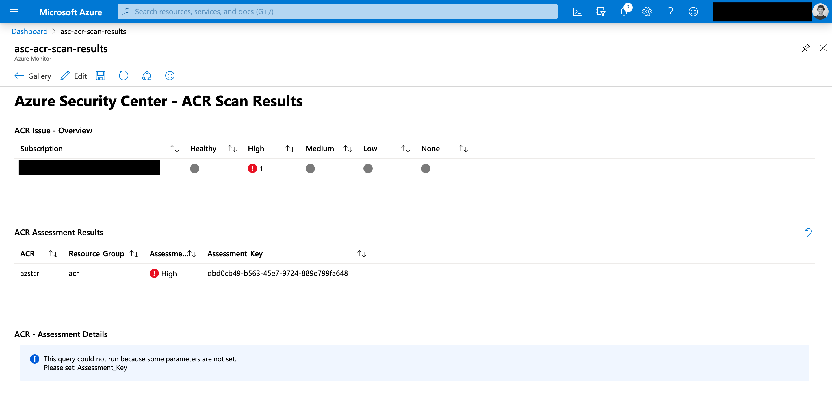 As seen above I get an overview about my ACR, the severity level and the assessment key. The latter one is used in the next query to get even more details about the scan result.